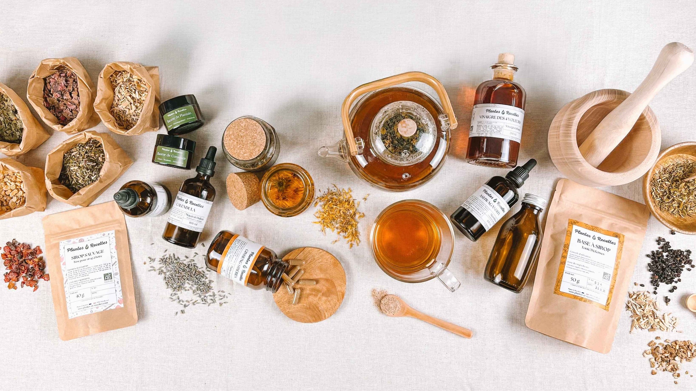 Notre boutique en ligne réunit tout ce qu’il faut pour faire par vous-même ou choisir des préparations déjà prêtes : tisanes, sirops, alcoolatures, épices sauvages, mélanges pour kéfir, produits ménagers naturels, accessoires et coffrets DIY.